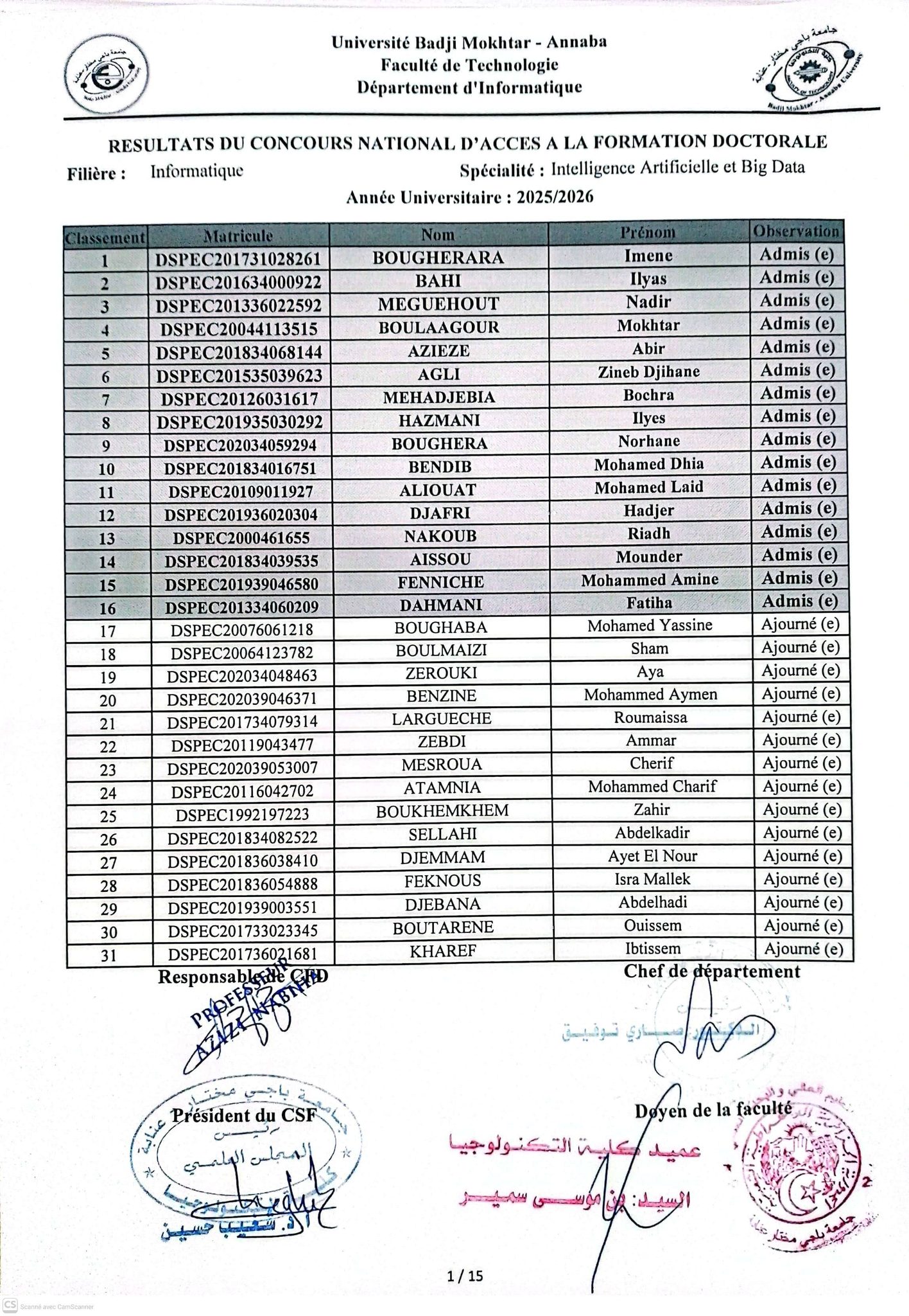 تُعلن إدارة #كلية_التكنولوجيا #جامعة_باجي_مختار_عنابة عن نتائج الترتيب للالتحاق بالتكوين دكتوراه في إطار برنامج «#ترقية_المرئية»