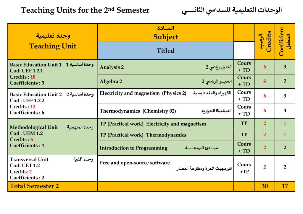 Teaching Units for the 2nd Semester