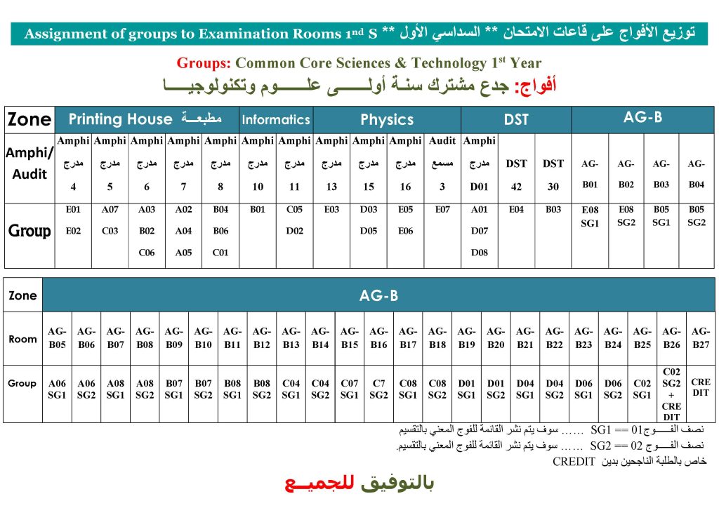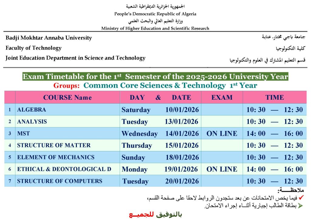 التوزيع الزمني لأمتحانات السداسي الاول