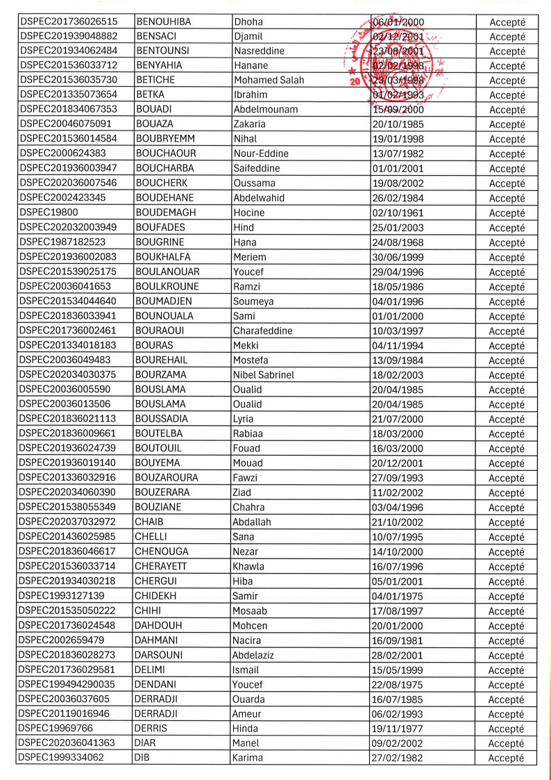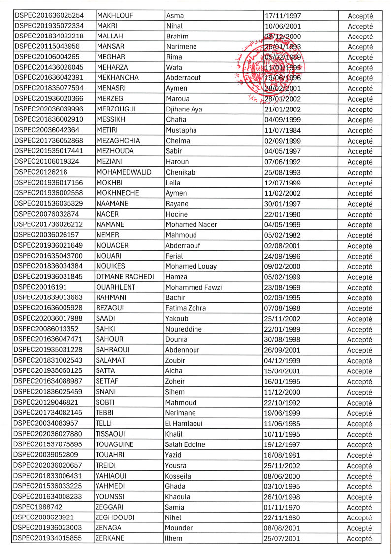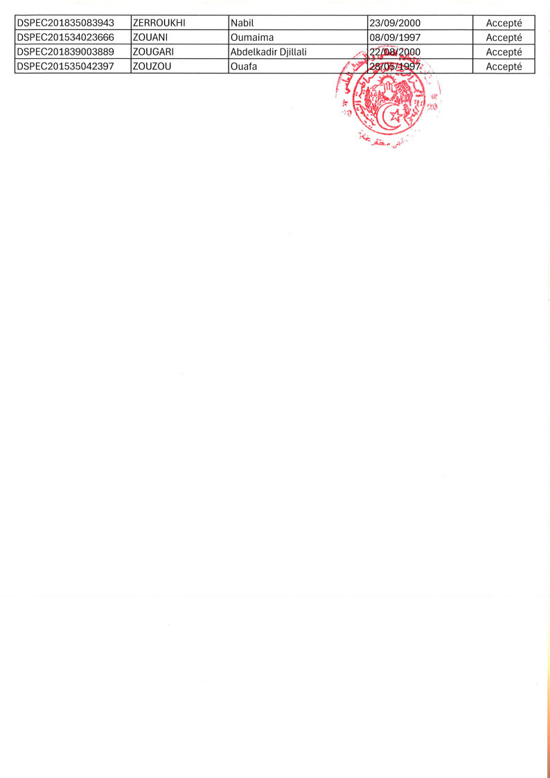 The Department of Electronics informs all concerned students of the publication of the list related to the doctoral admission competition.